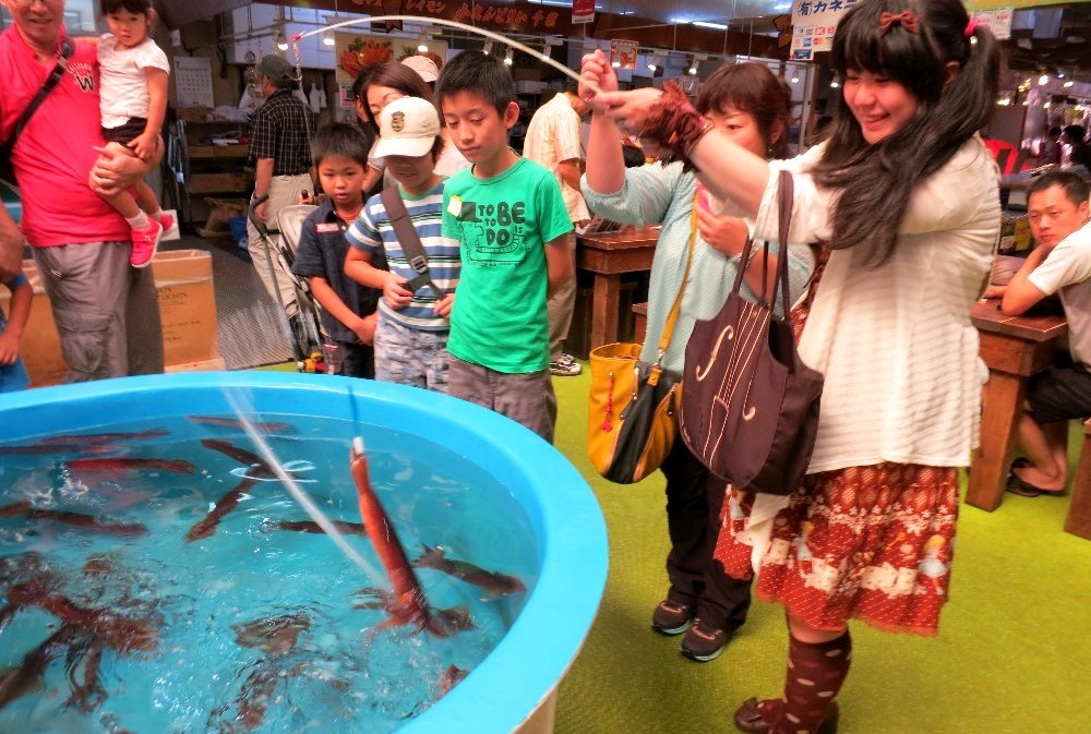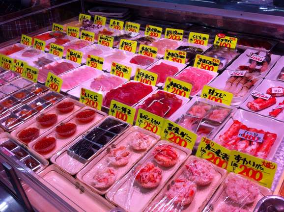 จุดที่ดีที่สุดสำหรับการ ทัวร์ฮอกไกโด หาอาหารอร่อยในฮาโกดาเดตะก็คือที่ตลาดเช้า Hakodate Morning Market นั่นเองค่ะ ซึ่งอาหารทะเลที่มีชื่อเสียงที่สุดของที่นี่ก็คือปลาหมึก โดยหลายๆ ร้านภายในตลาดเค้าจะมีอ่างน้ำขนาดใหญ่เพื่อให้เราตกปลาหมึกขึ้นมาเอง จากนั้นเค้าก็จะนำปลาหมึกที่เราจับได้ไปแล่บางๆ เพื่อทำซาซิมิให้ทานแบบสดๆ เลย และนอกจากจากปลาหมึกแล้ว อาหารอีกอย่างที่ต้องลองในตลาดเช้าแห่งนี้ก็คือ ปู โดยมีให้เลือกทั้งแบบย่าง นึ่ง หรือดิบๆ แบบซาซิมิด้วย ส่วนอาหารทะเลอื่นๆ ของที่นี่ที่น่าลองเช่นเดียวกัน ก็มีทั้งหอยเป๋าฮื้อ ไข่หอยเม่น เป็นต้น อ้อ.. ขนมและผลไม้ของที่นี่ก็ไม่ควรพลาดนะคะ